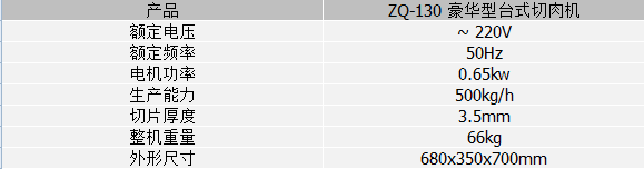 ZQ - 130豪華型台式切肉機是我公司精心設計和制造的食品機械。該産品可根據用戶需要加工各類肉片、肉絲等食材。設備切肉片厚度均勻,多規格選擇,可裝拆式刀組;産品外型美觀,性能穩定,操作簡便,高效實用,且符合國家衛生安全标準,适用範圍廣。